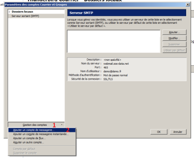- Remplir la deuxième partie “Serveur sortant” comme suit (2) :