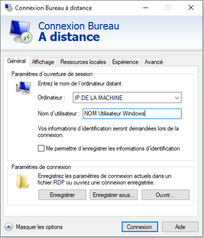 Créer une connexion RDP (Bureau à distance) sur Windows
