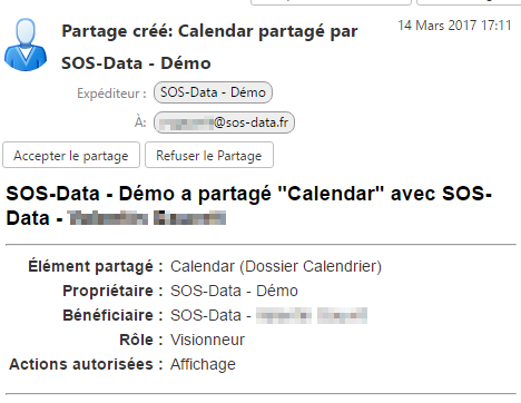 Lorsque le partage est créé, la personne concernée est avertie par un e-mail :