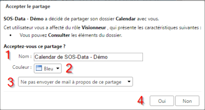 - Déléguer : Accès en lecture et écriture, vous pouvez créer de nouveaux rendez-vous sur le calendrier