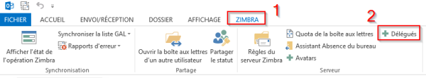 L'autorisation de partage peut se donner depuis le webmail ou depuis Outlook, si vous possédez le connecteur Zimbra (offre Rolland Garros).
