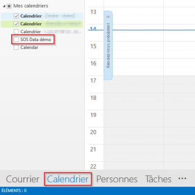 Cliquez sur Calendrier dans la barre du bas. Le calendrier partagé apparait automatiquement après quelques instants (redémarrer Outlook si nécessaire)