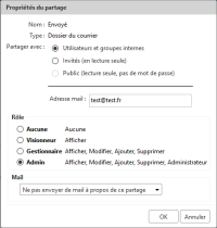 - Si vous décidez d'envoyer un mail à propos du partage, votre boite et celle à qui vous partagez le dossier recevrons le mail de confirmation.